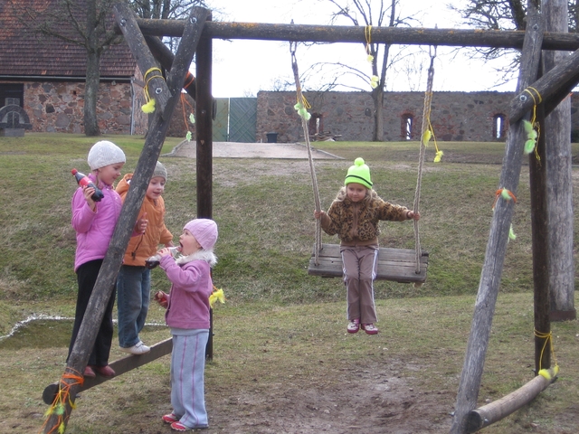 Mazajā zālē, kur tika atklāta Starptautiska ceļojošā fotoizstāde, kuras autori ir gan Ķemeru nacionālā parka administrācijas darbinieki, gan profesionāli fotogrāfi no Skotijas, Nīderlandes un citām valstīm. Fotogrāfijās iespējams vērot gan dabas skaistumu, gan tās ir arī bagātīgs izziņas avots. Kad izstāde bija atklāta visi devās uz lielo zāli, lai noklausītos un noskatītos "Milzkalnieku" skandētās Lieldienu dziesmas un deju kolektīva "Jampadracis" sniegumu. Tad sākās jautras izdarības – olu ripināšana, spilvenu kaujas, podu dauzīšana, dzēriena pudeļu makšķerēšana un citas. Pagalmā, kā jau Lieldienas tas piedienas, visus gaidīja izrotātas šūpoles.
