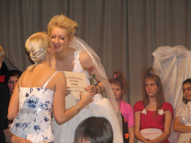 Vislielāko atzinību un 1. vietu ieguva 12.b klases sagatavotais modes šova priekšnesums «Mīlas aizdedze», kuru realizēja Gatis Kučāns, Jevgēņijs Rohmans, Sigita Švīgere un Kristīne Lejiņa. 2. vietā izvirzījās 9.c klases «Eņģelis un Co», ko atveidoja Nelda Žukovska, Elīna Peremeža un Madara Rūmniece. Vienlīdzīgu vērtējumu ieguva divi avangarda modes šova priekšnesumi – «Nelaimīgā mīlestība» 12.a klases audzēknes Katrīnas Taubes-Tauberes izpildījumā un 7.c klases «Siržu lauzējas» Madara Kārņupa un Linda Otrupa.
