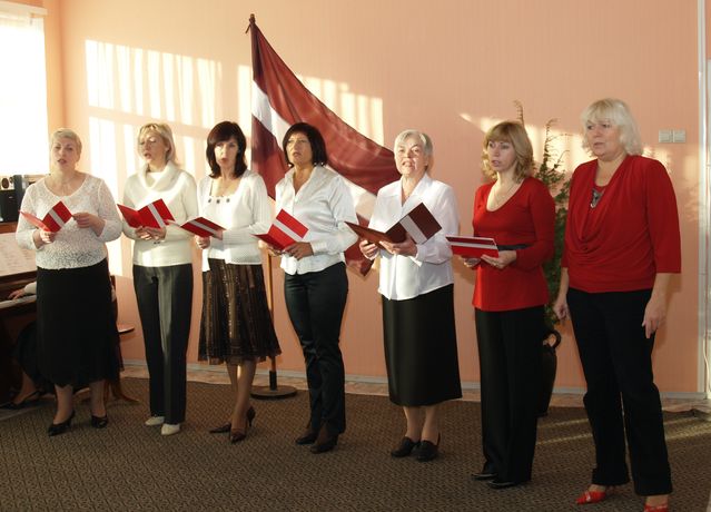 "Šo karogu es tev nododu, bērniņ, nes to ar godu caur dzīvi savu" – tā savukārt teica pedagogu ansambļa dalībnieces, apliecinot tēvzemes mīlestības, rūpju un darba tikuma nodošanu no paaudzes paaudzē. Kā sacīja «Pasaciņas» muzikālā audzinātāja Dace Eihmane, kas bija arī svētku koncerta organizētāja un rīkotāja, – dzimšanas dienā ir pierasts dāvināt, un tieši dziesmas ir "mūsu dāvana Latvijai". Laiku pa laikam dziedāja teju visa zāle – gan par priežu mežiem, kas līgo, gan par tēvu zemi stūru stūriem, gan par rudentiņu, kas nāk apgleznot Latviju.