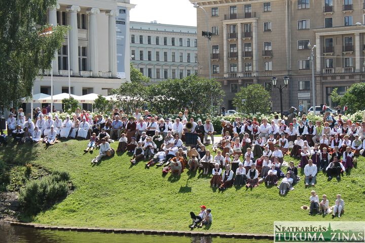 Vienlaikus svētku noskaņu pilsētā palīdzēja radīt folkloras kopas, kas nepagurušas dziedāja gan Vērmanes dārzā un Esplanādē, gan Bastejkalnā, Operas skvērā un Brīvības bulvārī, bet viskrāšņākā un skanīgākā bija kanālmalu sadziedāšanās. Operas pusē dziedāja arī folkloras kopa „Milzkalnieki” Anitas Apines vadībā.