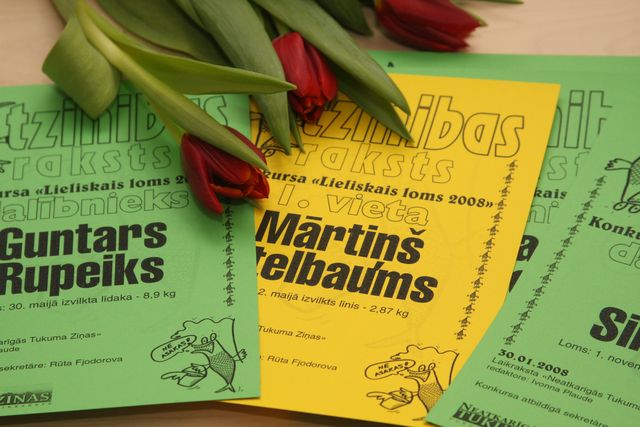Konkursā pirmo vietu ieguva Mārtiņš Štelbaums, kurš 12. maijā izvilka 2,870 smagu līni. Otrā vieta Egilam Štubim, kuram šī bija karpu vasara. Egils 14.jūlijā Tumes dīķi izvilka 15 kg smagu karpu, par ko arī saņēma konkursa uzvarētāja balvu, taču makšķernieku veiksme iepriecināja arī 15. jūnijā, kad viņš izvilka 10 kilogramnieci, bet 8.jūnijā – 6,2 kg smagu karpu. Trešā vieta Jānim Melderim, kurš 26. aprīlī izmakšķerēja 1,9 kg smagu karūsu. Katrs no šiem uzvarētājiem saņēma dāvanu karti Ls 25 vērtībā. Balvas sarūpēja un konkursu rīkoja veikali "Pludiņš", Zīles makšķerlietu veikals un "Neatkarīgo Tukuma Ziņu" redakcija. Paldies arī veikala "T Sports" makšķernieku nodaļai, kuras īpašnieki un darbinieki atbalstīja konkursu vasarā.