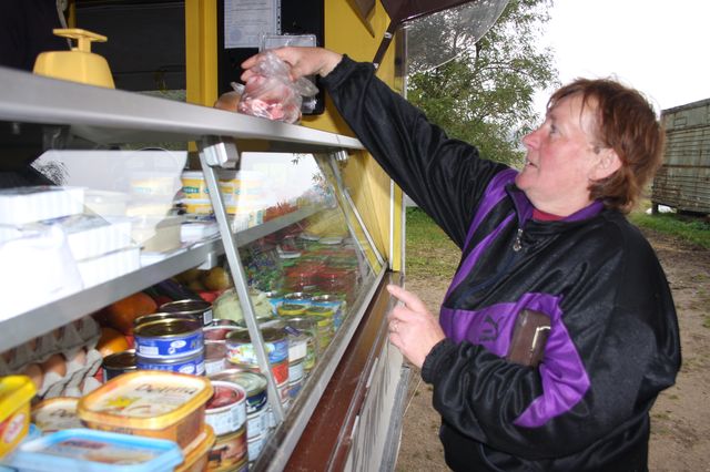 "Ja jau man nerentētos, nebraukātu. Godīgi: ēšanai un vēl biškucīt sanāk," tā par savu ripojošo bodīti teic Mārīte un vēl piebilst, "Laukos paliek tukšums. Tu neredzēji bezceri. To var redzēt mēneša beigās, kad pensijas diena tepat, bet vēl nav. Ēst visiem gribas. Es tirgoju oficiāli. Ar stipriem papīriem. Nereti mani aptur ekonomiskā policija, pārtikas dienests. Dies', pas', ja kas ne tā. Uzraksti: daudz saradušies tirgotāji. Viņi braukā ar netrafarēto busiņu un tirgo da jebko. Ir nodoms paplašināties. Gādāsim vēl vienu veikalbusiņu. Varētu izveidot vēl kādu maršrutiņu, ja kādam būtu vajadzība."