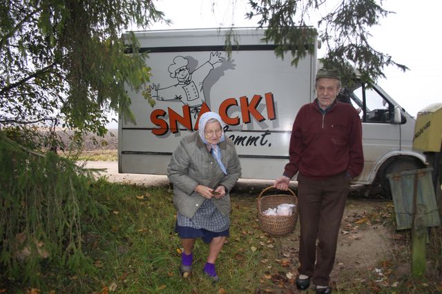 Abas kundzes labu laiku iepērkas un pamatīgi. Tur pirkstu uz iepriekš uzrakstīta saraksta. Ka tikai ko neaizmirst. Sauso zupīti, saldējumu un bonbongas, ne visai dārgas, bet pa saujai no katras zortes. Vaicājām par gaidāmo ziemu. Kundzes zinošas: "Ziema būs, kā lapas kokiem birst! Tad, kāda?! Ej, paskaties!" teic kundzes. Ēdamā nu gana. Tualetes papīrs lai sirdsmājiņā uz brilles ko nolikt.