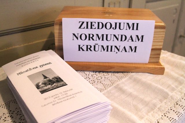 Mūzikas skolas skolotājs, klarnetists ir smagi slims un slimība progresē. Tās ārstēšanai un rehabilitācijai nepieciešami vairāk nekā 1000 latu. KOncertu klātienē apmeklēja ap 150 klausītāju – daudzi atzina, ka esot atnākuši tieši mākslinieka dēļ. Klātesošos uzrunāja draudzes prāvests Mārcis Zeiferts, mūzikas skolas direktore Ligita Zemniece un kultūras nama direktore Dace Lebeda, aicinādami visus labiem darbiem – palīdzēt un nepalikt malā, jo mēs nekad nezinām, kas ar mums notiks rīt, parīt. Koncerta noslēgumā klātesošos ar savu spēli pagodināja arī pats Normunds Krūmiņš. Mūzikas cienītāji sveica viņu ar ziediem, vēlēja labu veselību un izdošanos.