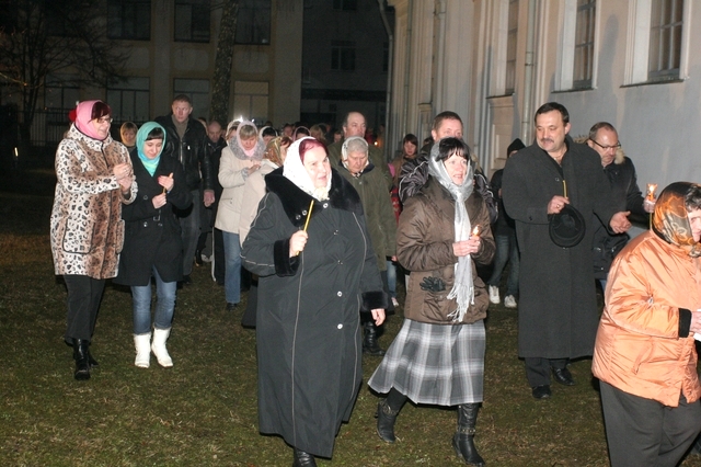 "Kristus ir augšāmcēlies", Tukuma sv. Nikolaja pareizticīgo draudzei un svētbrīdī klātesošajiem pavēstīja mācītājs Tēvs Joans. Dievkalpjums notika pusnaktī no sestdienas uz svētdienu. Ļaudis aizlūdza par Kristus ciešanām. Svētku procesija trīs reizes apgāja apkārt dievnamam. Viens otru sveica. Sev līdzi uz mājām aiznesa pasvētītos ēdienus un dzērienus.