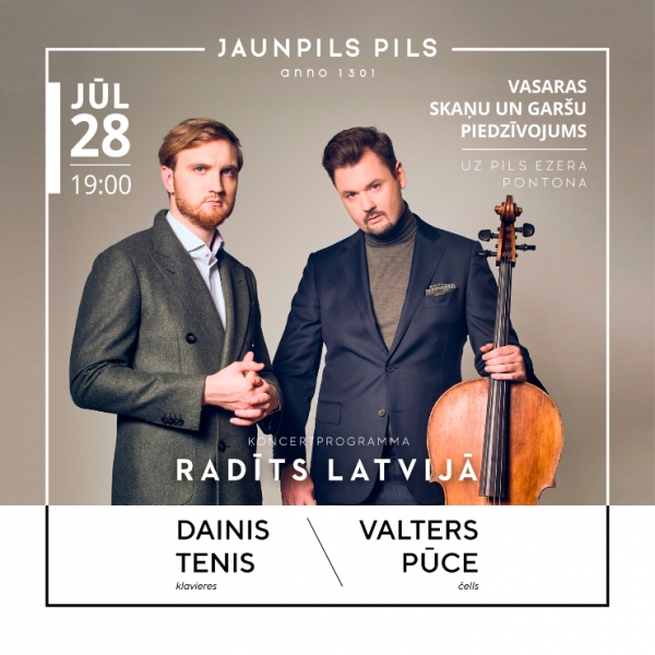 Jau nākamās nedēļas viducī – trešdienā, 28.jūlijā vasaras skaņu un garšu piedzīvojumu izbaudīt aicinās Valters Pūce un Dainis Tenis koncertprogrammā “Radīts Latvijā” Jaunpils pilī. Šoreiz mākslinieki uzstāsies uz pils ezera pontona, bet apmeklētāji tiks sēdināti pie galdiņiem apkārt ezeram. Tiks pasniegtas vieglas uzkodas un šampanieša glāze. Ierašanās no plkst. 18:00. Koncerta sākums pulksten 19.00. Biļetes nopērkamas biļešu paradīzes kasēs un arī Jaunpils pilī. . Adrese: Jaunpils pils, Jaunpils, Jaunpils pagasts, Tukuma novads. Vairāk informācijas pa tālruni 26101458, www.facebook.com/Jaunpilspils