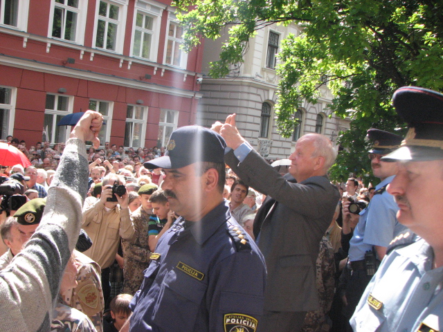 Gaidot plenārsēdes pārtraukumu un balojumu par Vineta Veldres atstādināšanu no amata, protestētāji dziedāja, daži klausījās radio tiešraidi no plenārsēdes zāles un tālāk no mutes mutē padeva debatētāju spilgtākos izteicienus. Piemēram, odiozā tēvzemieša Jura Dobeļa domu graudus: "Cik tālu esam nonākuši?! Vispirms nīstam zirgus… tad – cilvēkus." "Cilvēknīdēji!" secina Dobelis, vērtējot opozīciju un visus tos, kas "neko nezina no vēstures un bagātās Daugavpils jātnieku pulka pagātnes". Savukārt Sandra Kalniete atgādināja kādu interviju, ko tagadējais aizsardzības ministrs V. Veldre pirms pāris gadiem sniedzis žurnālam «Klubs». Tajā V. Veldre atklājis, ka viņa zilais sapnis – Latvijas hipodroms un zirgu staļļi, kur augtu zirgi arī valsts vajadzībām…