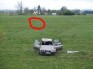Zemu lidoja, alus pudele ieripoja starp pedāļiem, līdz ar to zuda jauda, ar atvērto kreiso durvi skāra zemi un apmeta kūleni.... :)