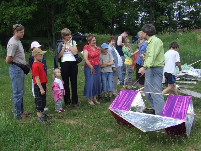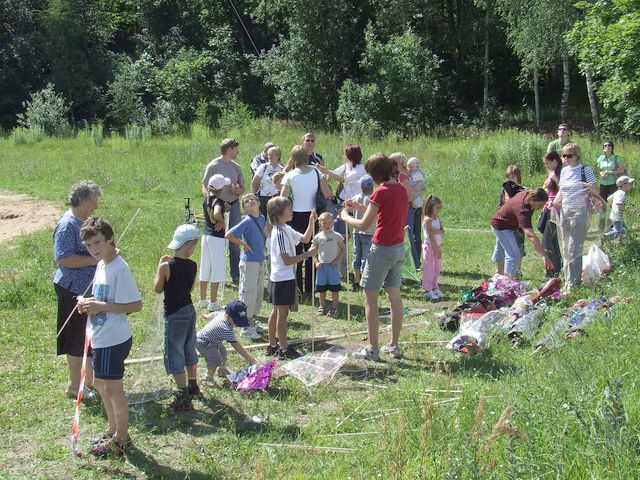 Šodien Melnezera kartinga trasē pulcējās gaisa pūķu entuziasti – lielāku pūķu izgatavošanu un gaisā laišanu ierādīja Alvils Cielēns no Talsiem, bet mazākus (pēc Elitas Miezes Zviedrijā noskatīta modeļa) izgatavot varēja Tukuma Mākslas skolas lidmodelistu darbnīcā, Jāņa Sproģa vadībā.