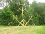 Folkloras takās uzstādītās lielās latviešu rakstu zīmes, katrai klāt arī skaidrojums: "Dainas ir jāmāk tulkot, tajā katram vārdam ir sava simbolika. Dainās ir izteikta mūsu tautas vēsture, izteiktas paaudžu paaudzēs krātās gudrības, tika dainas jāprot izlasīt. Ja to visu izstāsta un parāda, tad arī bērniem rodas interese, un folkloras mācīšana nav sarežģīta," uzskata Aiva. "Piemēram, Austriņš – tas ir Saules un Ģimenes koks, kur trīsstūrītis ir dieva zīme, bet kvadrātiņš – visuma zīme ar pārkrustotām pagalītēm, kas ir ģimenes ligzda. Šo koku kuplāku vēl jaunajam pārim. Tālāk ir Mārtiņa zīme, kalniņā – Pasaules zīme."