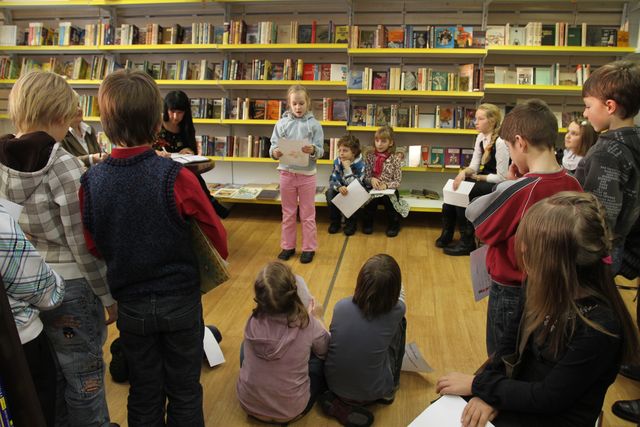 Šodien 17. decembrī, Jāņa Rozes grāmatnīcā Tukumā trīsdesmit skolēni lasīja pašu rakstīto dzeju, pasaciņas un citus literārus sacerējumus.