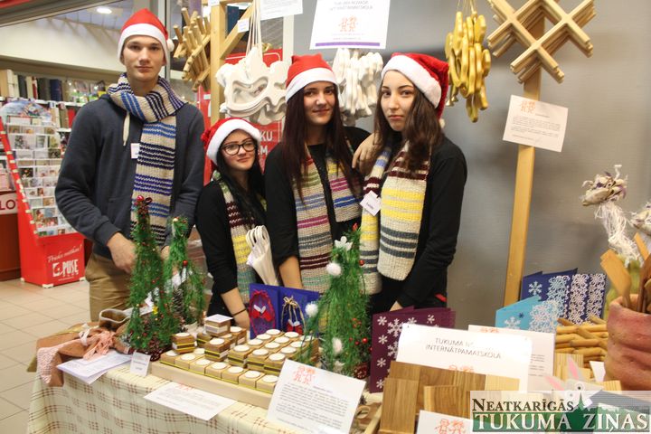 Koka ķeblīši un virtuves dēlīši, Ziemassvētku kompozīcijas un dekori, adījumi, tamborējumi un pērļotas skaistumlietas – tās bija tikai dažas skolēnu pašu gatavotās lietas, kuras vakar, 10. decembrī, tirdzniecības centrā «Tukums» piedāvāja skolēnu veidotie mācību uzņēmumi. Izstrādājumu klāsts bija tik bagātīgs, ka dažs labs pircējs tirdziņu izstaigāja vairākkārt un no veikala izgāja ar daudzām svētku dāvanām, atzīstot, ka šis esot gaidītākais pirmssvētku notikums.