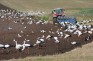 Simtiem balto stārķu uzartā laukā – šādu skatu tik bieži neieraudzīsi pat mūsu stārķiem šķietami bagātajā valstī. Kā pastāstīja Ķemeru nacionālā parka biotopu apsaimniekošanas speciālists Andis Liepa, šobrīd stārķu mazuļi jau paaugušies un kopā ar vecākiem dodas barības meklējumos. Uzarts lauks esot vislabākā barotne, kur atrodami, gan kukaiņi, gan peles un putnēni – stārķis nesmādē arī čūskas un zaķu mazuļus. Jāpiebilst, ka ar košļāšanu stārķi īpaši neaizraujas – upuris par brīvību nereti cīnās vēl putna kaklā, – kamēr nenonāk kuņģī.