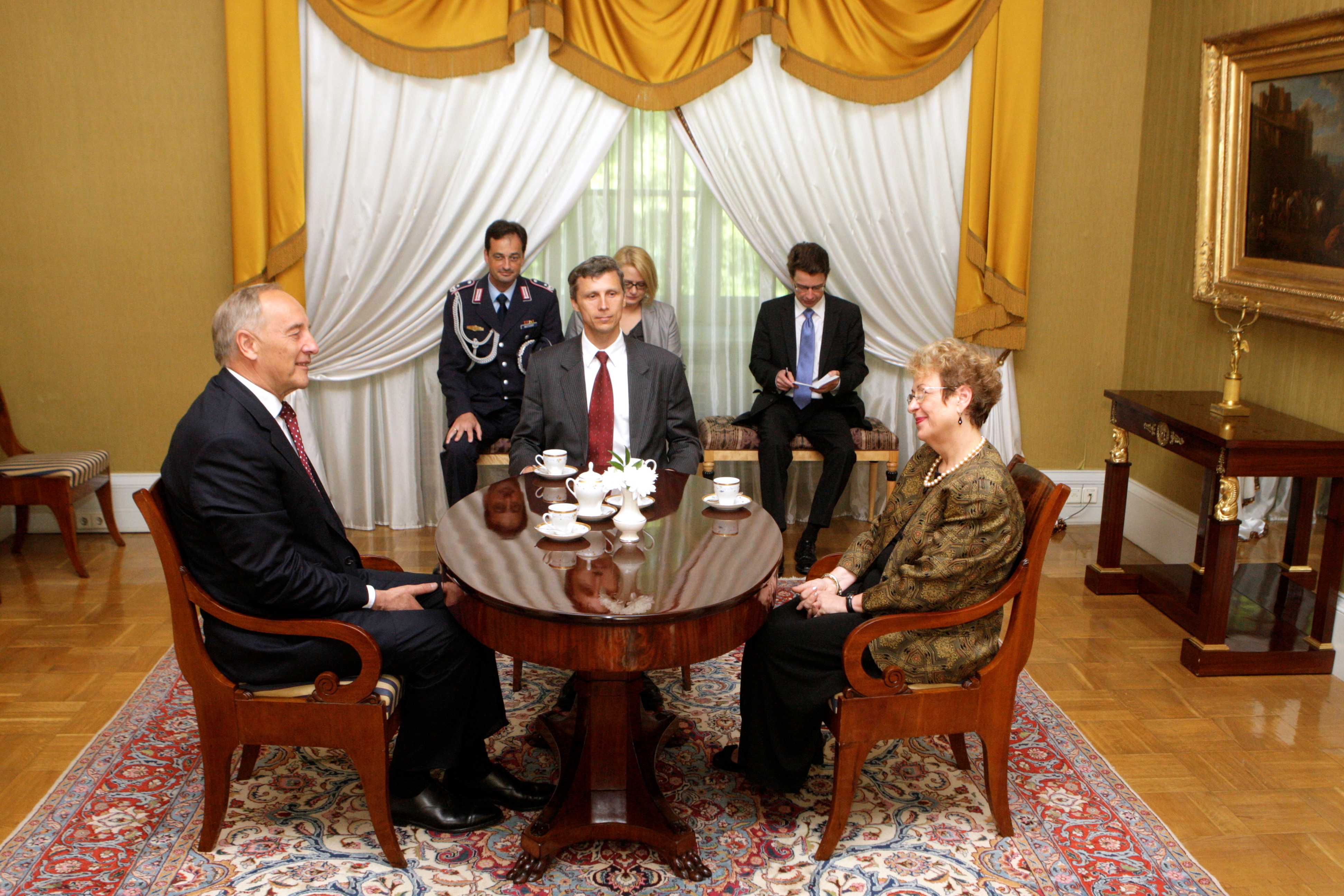 Tikšanās laikā ar jauno Vācijas vēstnieci Valsts prezidents akcentēja draudzīgās divpusējās attiecības un uzsvēra nepieciešamību turpināt un pastiprināt sadarbību izglītības jomā, it īpaši augstākajā un arodizglītībā. Tika pārrunāta Latvijas veiksmīgā ekonomiskās krīzes pārvarēšana un virzība uz eiro.
