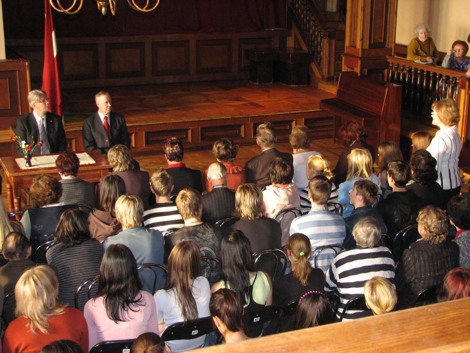 "Mūsu nākotnes sabiedrība veidojas bērnudārzos, skolās, tehnikumos un augstskolās. Mācību iestādēs veidojas cilvēka pasaules uzskats, turpmākie dzīves mērķi un plāni. Latvijas valsts veidojas uz zināmām vērtībām, un viena no tām ir zināšanas," sacīja Valsts prezidents V. Zatlers. Prezidents atbildēja uz audzēkņu jautājumiem, kas lielākoties skāra izglītību un darba tirgu.