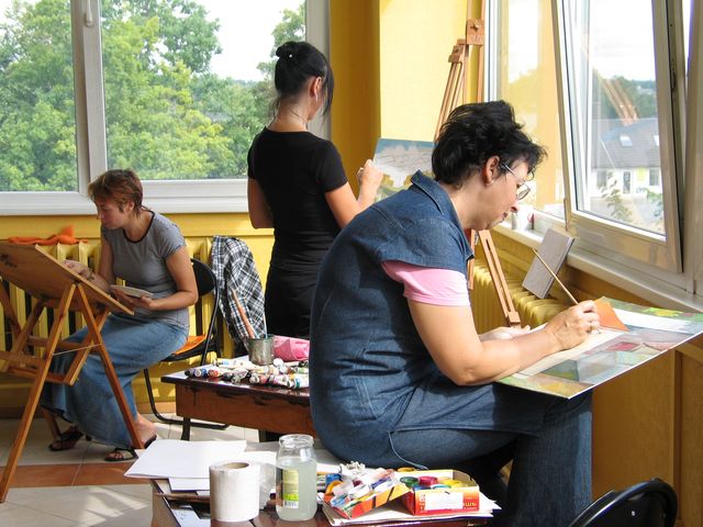 Vizuālās mākslas skolotāju metodiskās apvienības vadītāja Sņežana Tišlere stāstīja, ka kursos piedalās nebijis liels dalībnieču skaits – 26, kas mākslinieku Ulda Pauzera un Maijas Matīsas vadībā apgūst perspektīvu: "Vispirms apguvām teoriju, izmantojot muzeja fondu materiālus. Otrdien lietū skicējām, bet šodien strādājam radoši – ar krāsām. Tēma ir Tukums, un mēs cenšamies parādīt mazās ieliņas; mākoņus, kas aizklīst tālumā; kokus, kas sapņaini romantiski izgaist tālēs…" M. Matīsa atzina, ka lietus nedaudz aizskalojis sākotnējos plānus gleznot ielās, kur konkrēti stūrīši jau noskatīti, taču, tā kā pedagogi esot "elastīgi" cilvēki, darbu tas īpaši nav iztraucējis. Tukuma tēma kursiem noskatīta, lai, kā domā mākslinieks U. Pauzers, iemūžinātu to, kas vēl saglabājies no vecpilsētas un – kamēr saglabājies. Viņš pieļauj, ka reiz šādas pilsētas daļas, kādu to skatām tagadējā veidolā, vairs nebūs.