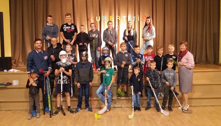 Zantē bērniem dāvina florbola ekipējumu un šovu