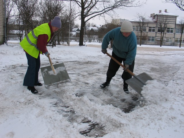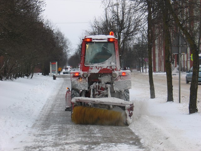 Nedēļas nogalē pilsētas ielas un ietves pārklājās ar sniega segu, radot daudz lielāku darba apjomu gan sētniekiem, gan ielu uzturētājiem. Lai arī brīžos, kamēr putina, ar slotu strādāt nav jēgas, pirmdien gandrīz visu dienu sētnieki tīrīja ietves, pagalmus un laukumus, lai ērtāk gājējiem un arī automašīnām.