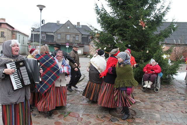 Svētku egli vakar Adventes 2. svētdienā posa Tukuma nevalstiko organizāciju ļaudis. Rotāja, cik vien augstu varēja aizsniegt. Lai spītētu lietum un nelaikam, tukumniekus jautroja folkloras kopa "Pūrlāde" no Pūres.