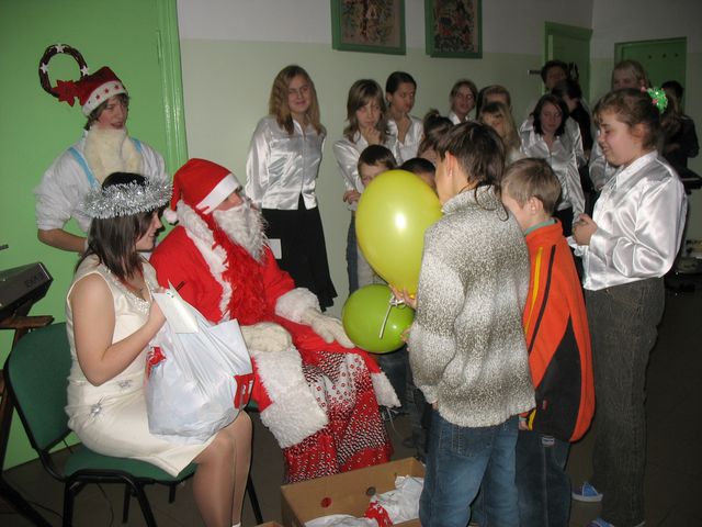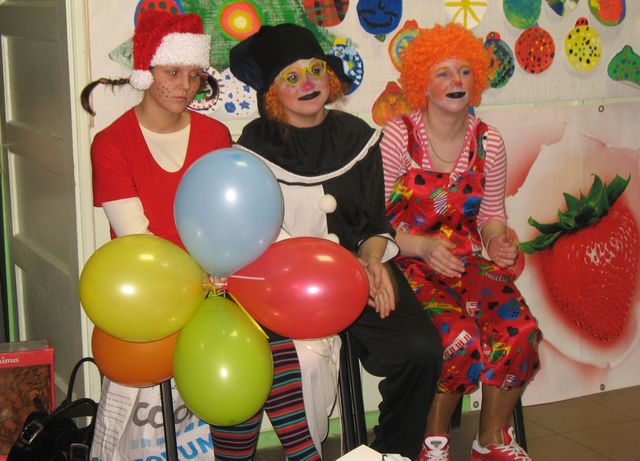 Vispirms pie koši rotātas eglītes skanēja pašu un «Saimes» dalībnieku dziedātās dziesmas, bet pēc tam īstā jautrība sākās kopā ar Pepiju Garzeķi, rūķi, klauniem un Ziemassvētku vecīti. Viņi darīja visu, kas svētkos un šodien aktuāls – pasūrojās pa grūto dzīvi un tālo nācienu bezsniega ziemā, minēja jautras mīklas, gāja smiekliem pilnās rotaļās un dalīja dāvanas. Liela kaste piparkūku ar piebildi neapēst tās saturu vienai pašai tika skolas direktorei Irēnai Ravai, savukārt prāvs sainis gardumu apmaiņā pret svētku pantiņu – katrai klasei. Jāteic, ar koši tērpto svētku un pasaku tēlu gādību jautri bija visiem.