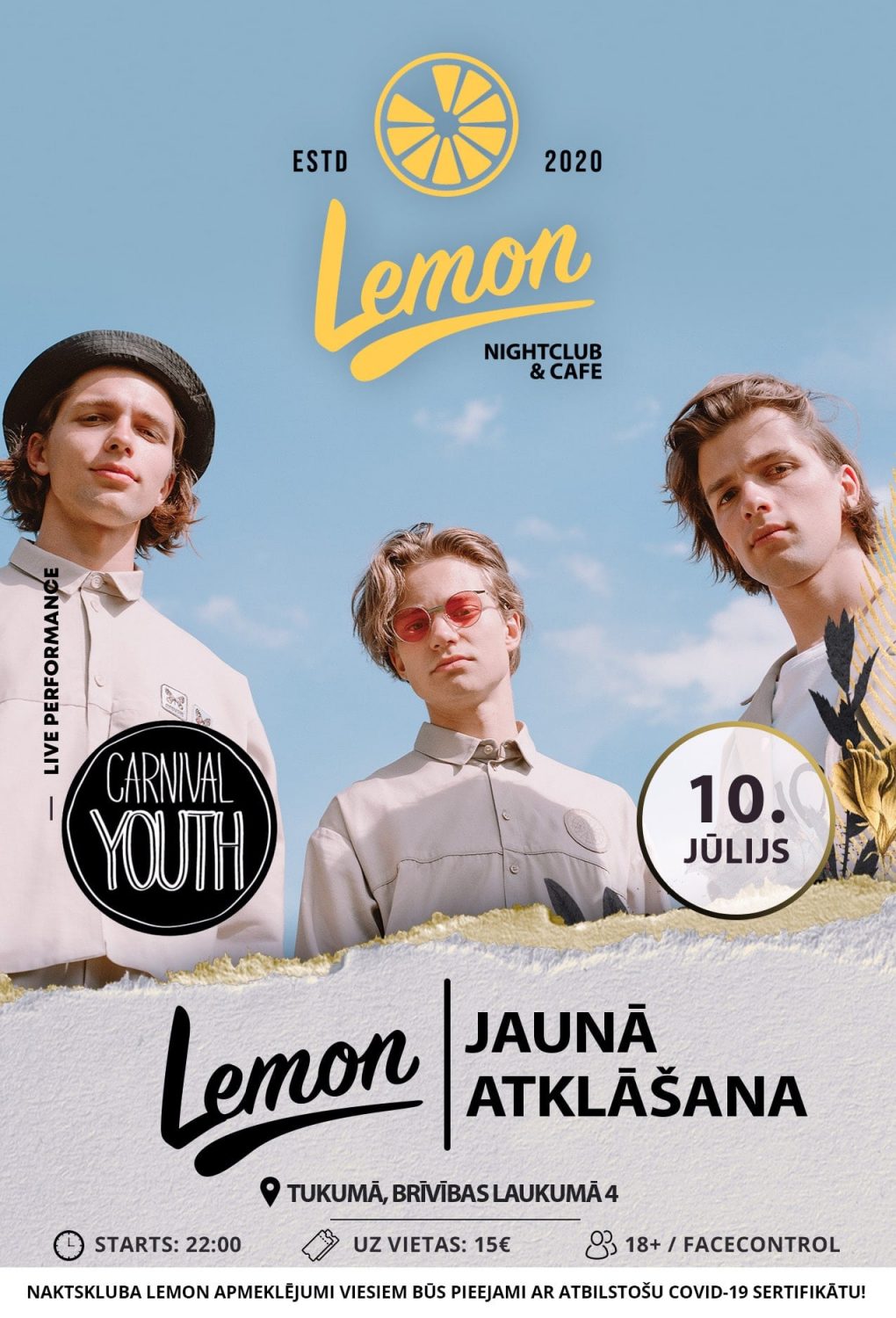 Sestdienas, 10.jūlija vakarā Tukumā durvis jaunās telpās vērs naktsklubs “Lemon Club”. Atklāšanas pasākumā visi aicināti uz grupas Carnival Youth koncertu. Pasākuma sākums 22.00. Ieeja tikai no 18 gadu vecuma.
