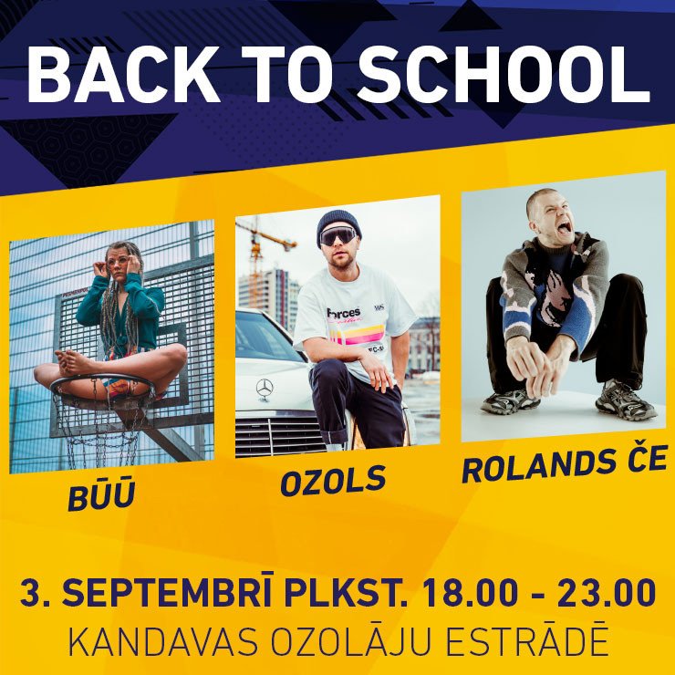 Viens vakars – trīs apvienības, trīs neaizmirstamas ballītes – trešajā septembrī Kandavā. Starp koncertiem mūziku spēlēs un Jūs izklaidēs DJ. Darbosies bārs. Nosvinēsim skolas sākumu kopā, tiekamies Kandavā!