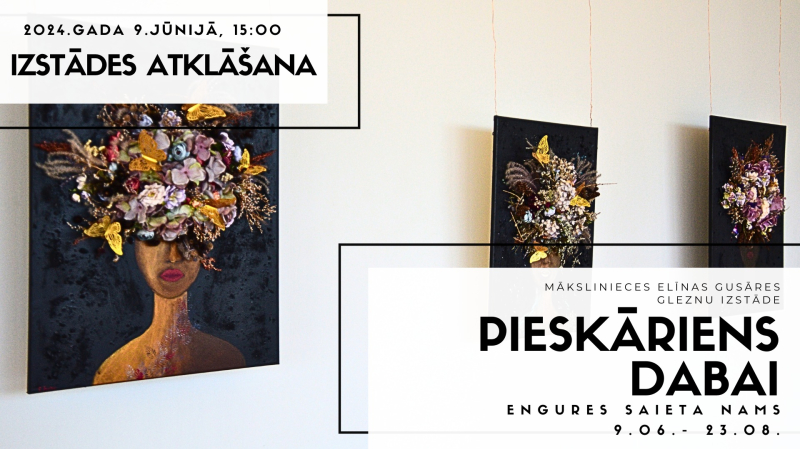 Engures Saieta namā 9.jūnijā pulksten 15:00 tiks atklāta mākslinieces Elīnas Gusāres mākslas darbu izstāde, kas ļaus iepazīt nedaudz citādāku mākslas pasauli! Būs uzkodas, dzērieni un brīnišķīga, muzikāla atmosfēra kopīgās sarunās un sajūtās. Izstāde būs apskatāma līdz 2024.gada 23.augustam. Adrese: Engures Saieta Nams, Jūras iela 114, Engure, Tukuma novads.