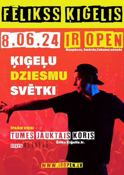 Atklājot vasaras sezonu, 8. jūnijā pulksten 19:00 Smārdes kultūrvietā IR OPEN notiks grandiozi Ķiģeļu dziesmu sadziedāšanas svētki, uz kuriem ir aicināts ikviens, kurš zina vismaz vienu pantiņu no Fēliksa Ķiģeļa vai Ērika Ķiģeļa dziesmu repertuāra. Par daudzbalsīgu sadziedāšanās skanējumu rūpēsies ne vien Fēlikss ar savu pavadošo grupu un draugiem dzīvē un mūzikā no grupas “Bezvējš”, bet jaudu un īstu kurzemnieku attieksmi piedos arī Tumes jauktais koris. Biļetes iegādājamas www.bilesuserviss.lv. Adrese: “Mazpūces”, Smārde, Smārdes pagasts, Tukuma novads.