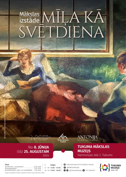 Izstādes “Mīļa kā svētdiena” atklāšana Tukuma Mākslas muzejā 8.jūnijā pulksten 12:00. Tās centrālais mākslas darbs ir Tukuma muzeja krājuma jaunieguvums – izcilā tukumnieka Kārļa Neiļa (1906–1991) glezna “Gleznotāja darbnīcā” (1935), Ieeja atklāšanas pasākumā bezmaksas. Izstāde apskatāma no 8. jūnija līdz 25. augustam. Adrese: Tukuma Mākslas muzejs, Harmonijas iela 7, Tukums.