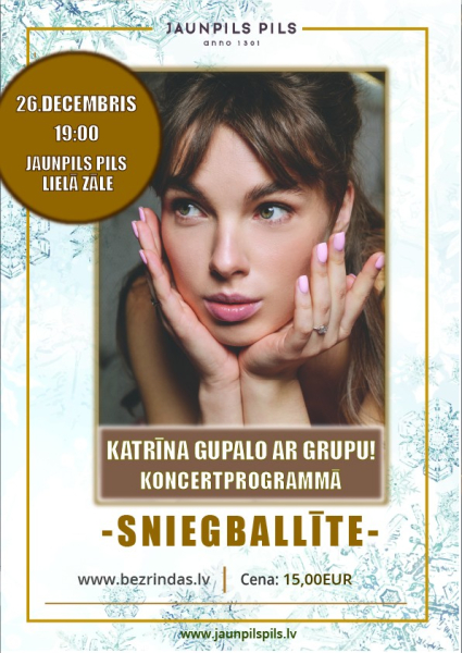 Jaunpils pils Lielajā zālē 26.decembrī būs skaisti, skanīgi svētki. Tos koncertprogrammas “Sniegballīte” apmeklētājiem uzdāvinās Katrīna Gupalo ar grupu.