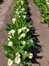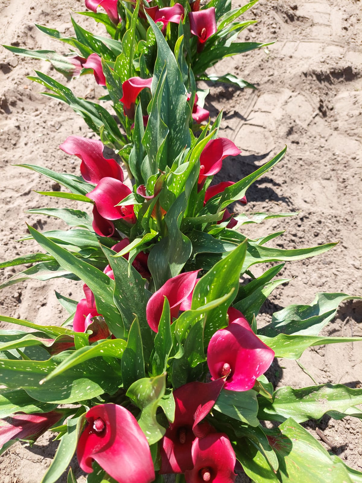 – Kādreiz man bija neliela kallu kolekcija, kad audzēju tās hobija līmenī. Tad biju pārstājis tās audzēt un pašlaik atkal atsāku. Es kallas audzēju vagās: izdzen vagas kā kartupeļiem un tur ieliek kallu gumus. Laukam ir jābūt kārtīgi samēslotam, jo kallām vajag ļoti auglīgu zemi. Es kallas stādu, gandrīz varētu teikt, zirga mēslos. Pamatmēslojumā dod bezhlora kompleksos minerālmēslus, tiem pievienojot nitraboru vai kalcija nitrātu. Tas ir kā pamatu pamats. Kalcija nitrātu vai nitraboru vajag visām puķēm, jo tas dod tīrāku šūnu struktūru un novērš puves veidošanos. Un zantedešijas ir diezgan puveklīgas. Jebkurai augu kultūrai, kam trūkst kalcija, sākas puve. Tā tas ir arī ābelēm, arī citiem augiem. Kallas ir skābāku augsni mīlošas, bet, nedaudz dodot kalcija nitrātu, tas augsnes reakciju neizmainīs, turklāt kallām īpaši skābu augsni, kā, piemēram, krūmmellenēm, nemaz nevajag.