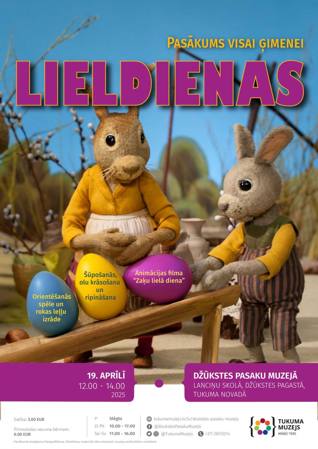 Ieejas maksa pasākumā – 3.00 EUR, pirmsskolas vecuma bērniem – ieeja bez maksas.