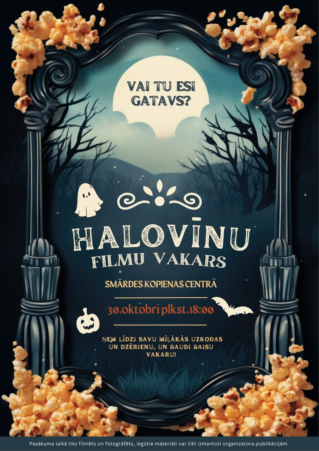 Smārdes kopienas centrā valdīs spocīgā kino noskaņa ar īpaši atlasītām filmām. Skatītājus gaidīs gan šausmu, gan humora pilni stāsti, kas radīs pareizo rudens vakara gaisotni. Vakarā varēs baudīt filmas, kopā ar draugiem dalīties iespaidos un ļauties baisajai jautrībai līdz pat pēdējiem titriem. Kino vakars solās būt kā siltas gaismas un tumsas piedzīvojums vienlaikus. Nākot līdzi jāņem savas iecienītākās uzkodas.