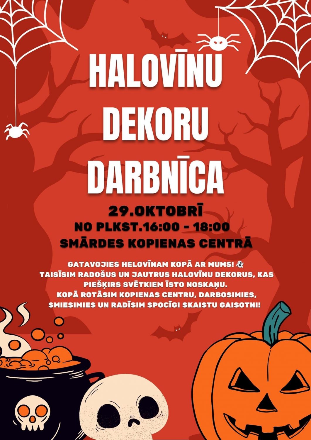 Smārdes kopienas centrs pārtaps par radošu darbnīcu, kurā valdīs smiekli un iedvesma. Dalībnieki varēs veidot tematiskus Helovīnu dekorus un ļauties iztēlei, pārvēršot telpas par īstu spoku midzeni. Tā būs iespēja ģimenēm un draugiem pavadīt vakaru kopā, radot savu noskaņu. Radošums, rotaļīgums un neliela šausmu deva apvienosies vienā aizraujošā pieredzē.