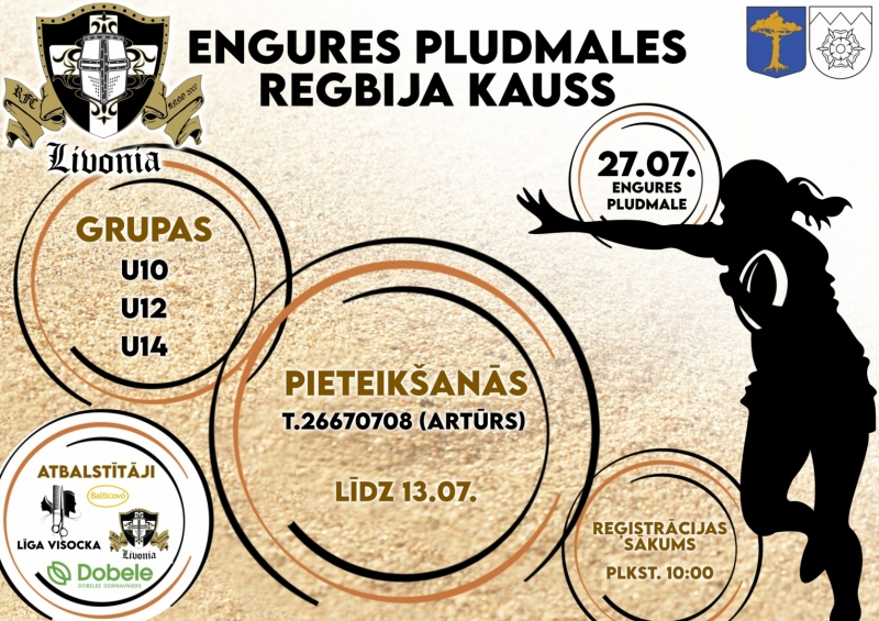 Engures pludmalē nedēļas nogalē norisināsies pludmales regbija kauss 27.jūlijā no pulksten 10:00. Adrese: Engure, Engures pagasts, Tukuma novads.