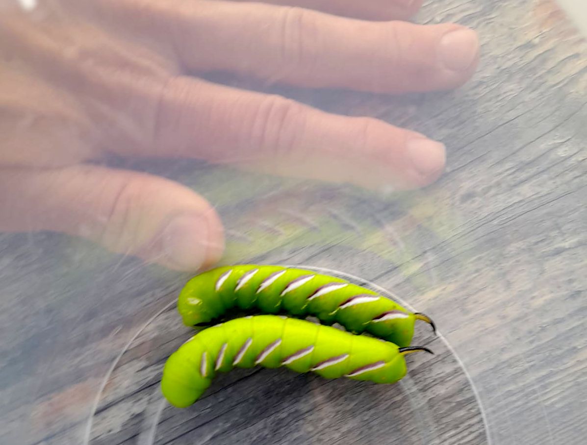 Un, lūk, konkrētais foto modelis gandrīz droši ir ceriņu sfinga (Sphinx ligustri) kāpurs, un tas attīstīsies par vienu no lielākajiem Latvijas naktstauriņiem, kurš var lepoties ar spārnu atvērumu pat desmit centimetru platumā. Suga ir plaši izplatīta un bieži vien manāma pat pilsētvidē, taču pārsvarā – nakts stundās. Kāpuru ēdienkartē, pirms ielīst zemes virskārtā, kā jau nojaušams, ir ceriņi, tāpat kāpuriem garšo ošu lapas, irbenes, tie manīti pie saulsardzenēm. Kāda tieši ir melnā ”raga“ funkcija, kas rotā košo kāpuru, zinātniekiem vēl nav skaidrs, taču, visticamāk, tas ir paredzēts putnu apmānīšanai, bet cilvēkiem nekādu bīstamību nerada. Interesanti, ka savā tauriņu formā sfingi ir aktīvi ātri un tāli lidotāji. Tādēļ Latvijā piemērotos gados regulāri ielido pat Melnās jūras apkaimē sastopamas sugas. Sfingi ir nozīmīgi vairāku augu sugu apputeksnētāji, kam nektārs atrodas dziļi ziedā. Garā snuķa dēļ tie nektāru sūc kā kolibri – plivinoties un nenolaižoties uz zieda.