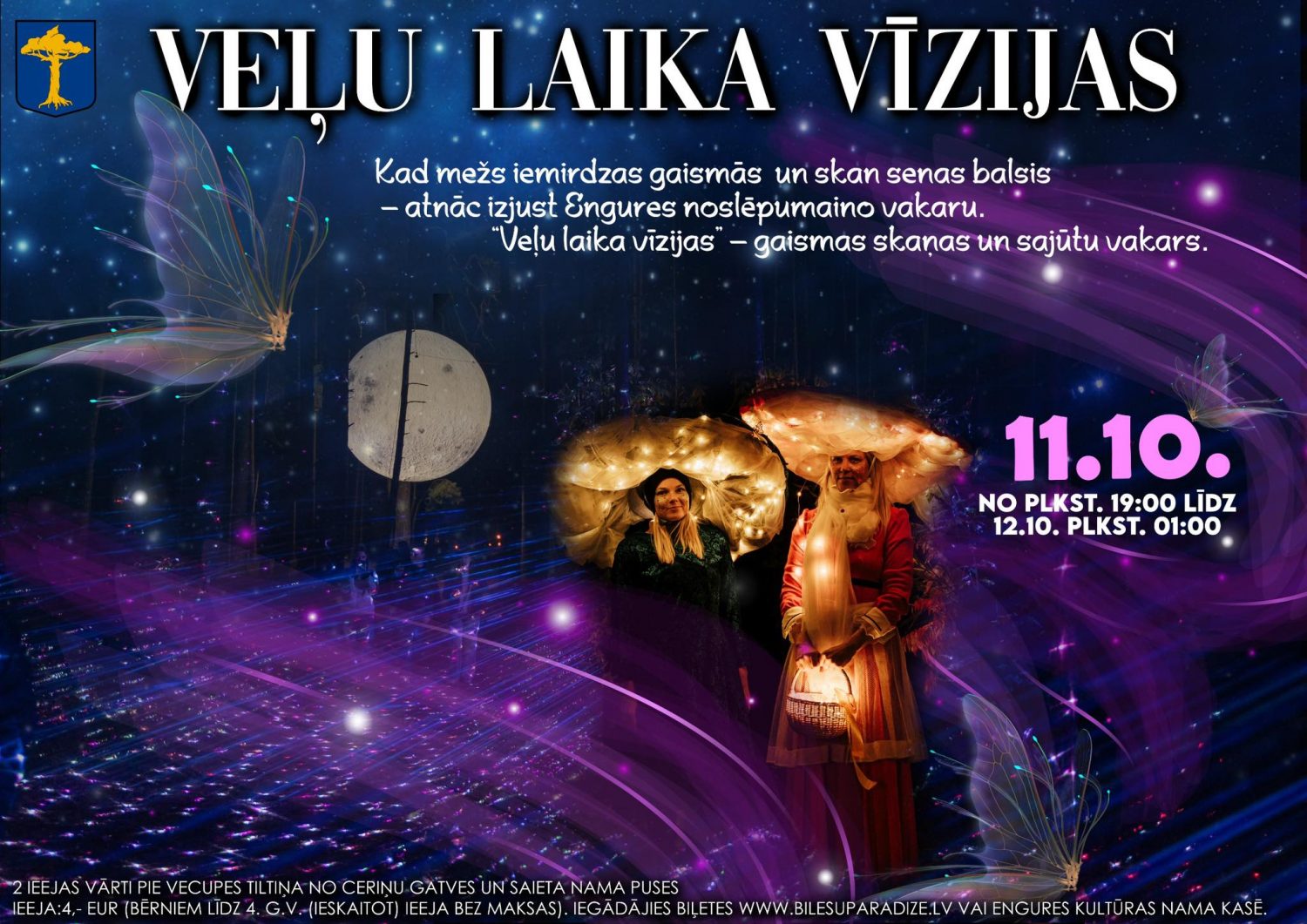 Engures mežs pārvēršas par maģisku pasaku zemi, kur gaismas rotaļas atdzīvinās kokus un zarus. Noslēpumainās meža būtnes – mirdzošās laumas un senatnīgie tēli – atklājas tikai uzmanīgākajiem vērotājiem. Gaismas un ēnu spēles sapludinās realitāti ar fantāziju, radot neaizmirstamu piedzīvojumu visai ģimenei. Norises vieta: Engures Saieta Nams, Jūras iela 114, Engure, Tukuma novads. Norises laiks: 11.10.2025 plkst. 19:00. Ieejas maksa: 4 EUR. Vairāk informācijas: 63161234