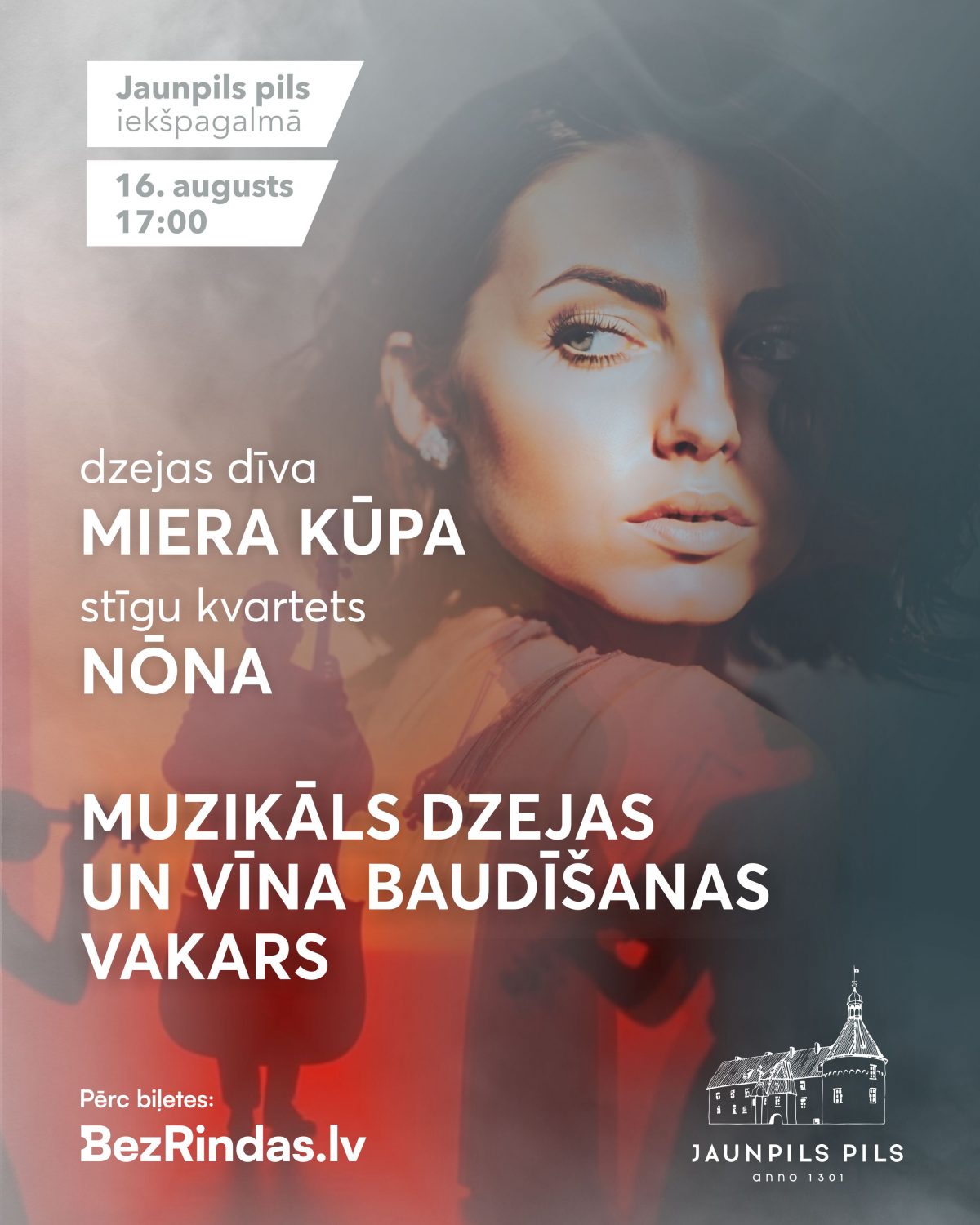 Vakars apvienos dzeju, mūziku un izsmalcinātu vīnu Jaunpils pils iekšpagalmā. Dzejas lasījumus sniegs Miera Kūpa, radot noskaņu, kurā iespējams apstāties un baudīt mirkli. Stīgu kvartets NŌNA papildinās vakaru ar muzikālu emocionālo dimensiju. Notikums piedāvās harmonisku vārdu un skaņu mijiedarbību vēsturiskā atmosfērā. Norises vieta: Jaunpils pils, Baznīcas iela, Jaunpils, Tukuma novads. Norises laiks: 16.08.2025 plkst. 17:00. Vairāk informācijas: 26187442