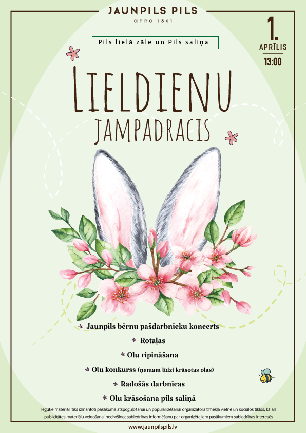 Lieldienu Jampadracis ienesīs pavasara čalas arī Jaunpils pilī. Tās saime aicina Lieldienu svinētājus svinēt Lieldienas 1.aprīlī no pulksten 13:00. Prieka, smieklu un nebeidzamas jautrības pilna diena garantēta! Būs Lieldienu spēles, radošās darbnīcas Jaunpils pils kultūras centrā un uz pils saliņas! Vairāk informācijas www.jaunpilspils.lv.