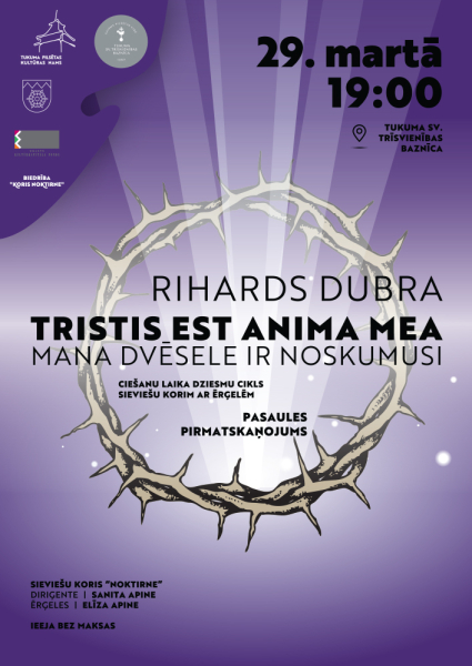 29.martā pulksten 19:00 Tukuma Sv.Trīsvienības baznīcā izskanēs īpašs dziesmu cikls “Mana dvēsele ir noskumusi”, piedaloties sieviešu korim “Noktirne” ar ērģelēm. Muzicēs Rihards Dubra.