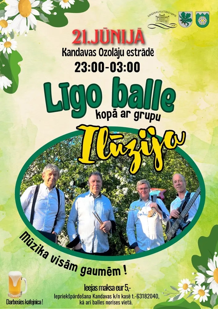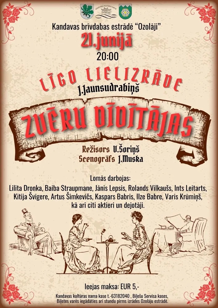 Savukārt Kandavas brīvdabas estrādē “Ozolāji” 21.jūnijā būs skatāma Līgo lielizrāde “Zvēru dīdītājas”. Režisors V. Šoriņš. Ieejas maksa 5 EUR. Pēc izrādes no pulksten 23:00 balli spēlēs grupa “Ilūzija”. Ieeja ballē 5 EUR.