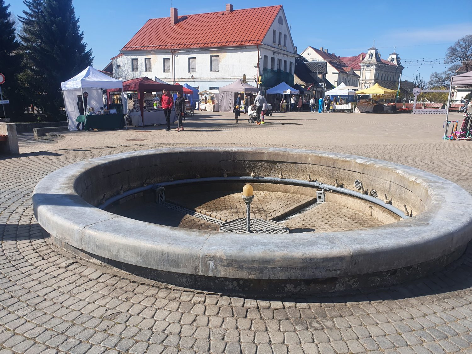 Un atkal tā pati neestētiskā, novecojusī, neinteresantā, betona ieskautā strūklaka! Labi harmonē ar izdrupušajiem trotuāriem, un uz sabrukšanas robežas esošajām ēkām. Un tas pašā Tukuma centrā!