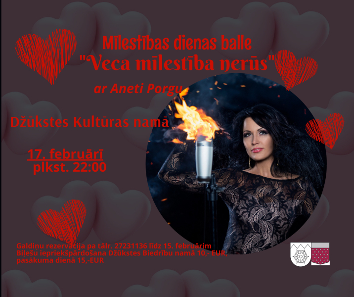 Savukārt Džūkstē Mīlestības dienas ietvaros būs gan senioru deju kolektīva “Džūkste” jubilejas koncerts, gan arī balle “Veca mīlestība nerūs” ar Aneti Porgu. Koncerts būs 17.februārī pulksten 17:00, balle no pulksten 22:00 Džūkstes kultūras namā.