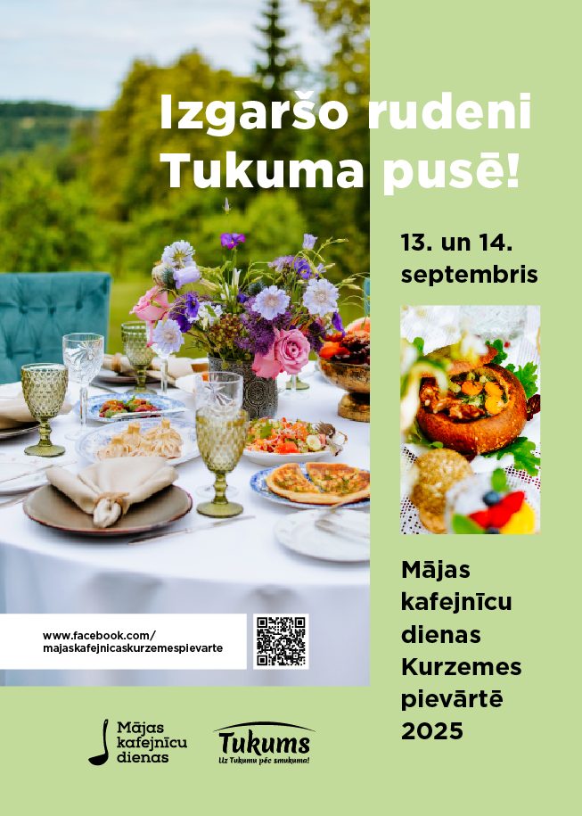 Septembra vidus Tukuma pusē atkal solās gards. Vairāk informācijas par mājas kafejnīcām var meklēt šeit – https://majaskafejnicas.lv/galamerki/majas-kafejnicas-kurzemes-pievarte-izgarso-rudeni-tukuma-puse/ vai šeit – www.facebook.com/majaskafejnicaskurzemespievarte/