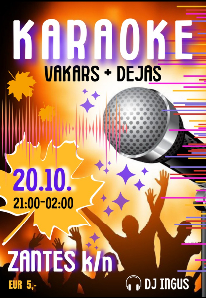 Atgādinām, ka 20. oktobrī pulksten 21.00 Zantes kultūras namā būs karaoke dziesmu un deju vakars. Par mūziku parūpēsies DJ Ingus. Bet 21. oktobrī 21.00 un Lapmežciemā «Pepsi Night Party», kurā skanēs labākā astoņdesmito, deviņdesmito un divtūkstošo gadu mūzika.
