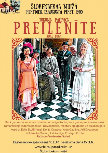 12. augustā 19.00 Šlokenbekas muižas pagalmā notiks muzikāla komēdija 2. daļās – Jukuma Paleviča luga «Preilenīte».
