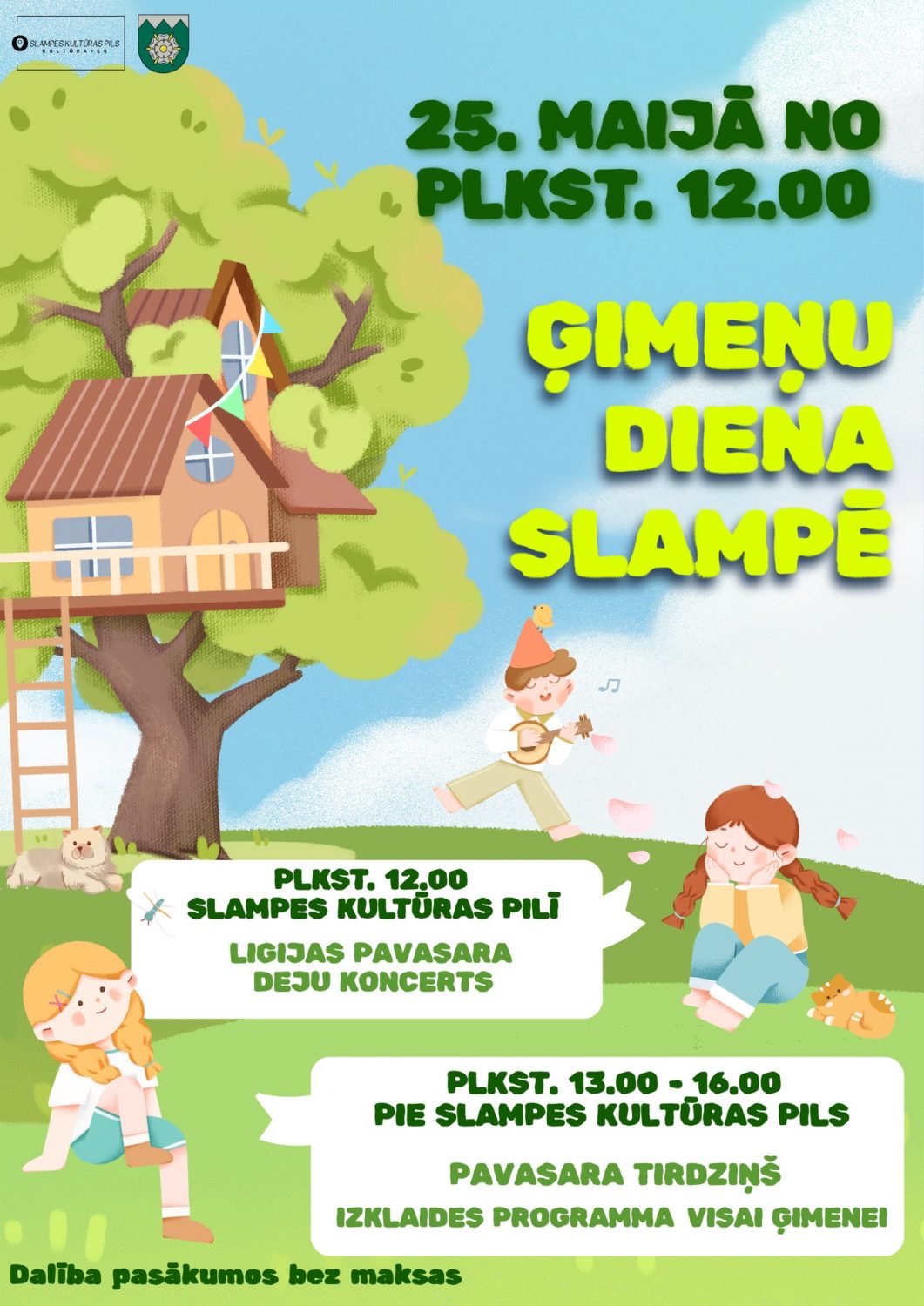 Slampes skatuvi piepilda bērnu deju soļi, dzirkstošs prieks un krāsainas emocijas. Blakus – tirdziņš ar vietējiem labumiem un atrakcijas mazākajiem. Dienas programma, kurā satiekas paaudzes un kopā būšanas prieks. Norises vieta: Slampes Kultūras pils, Slampe, Slampes pagasts, Tukuma novads. Norises laiks: 25.05.2025 plkst. 13:00. Ieeja: bez maksas. Vairāk informācijas: 20005704, 28340610