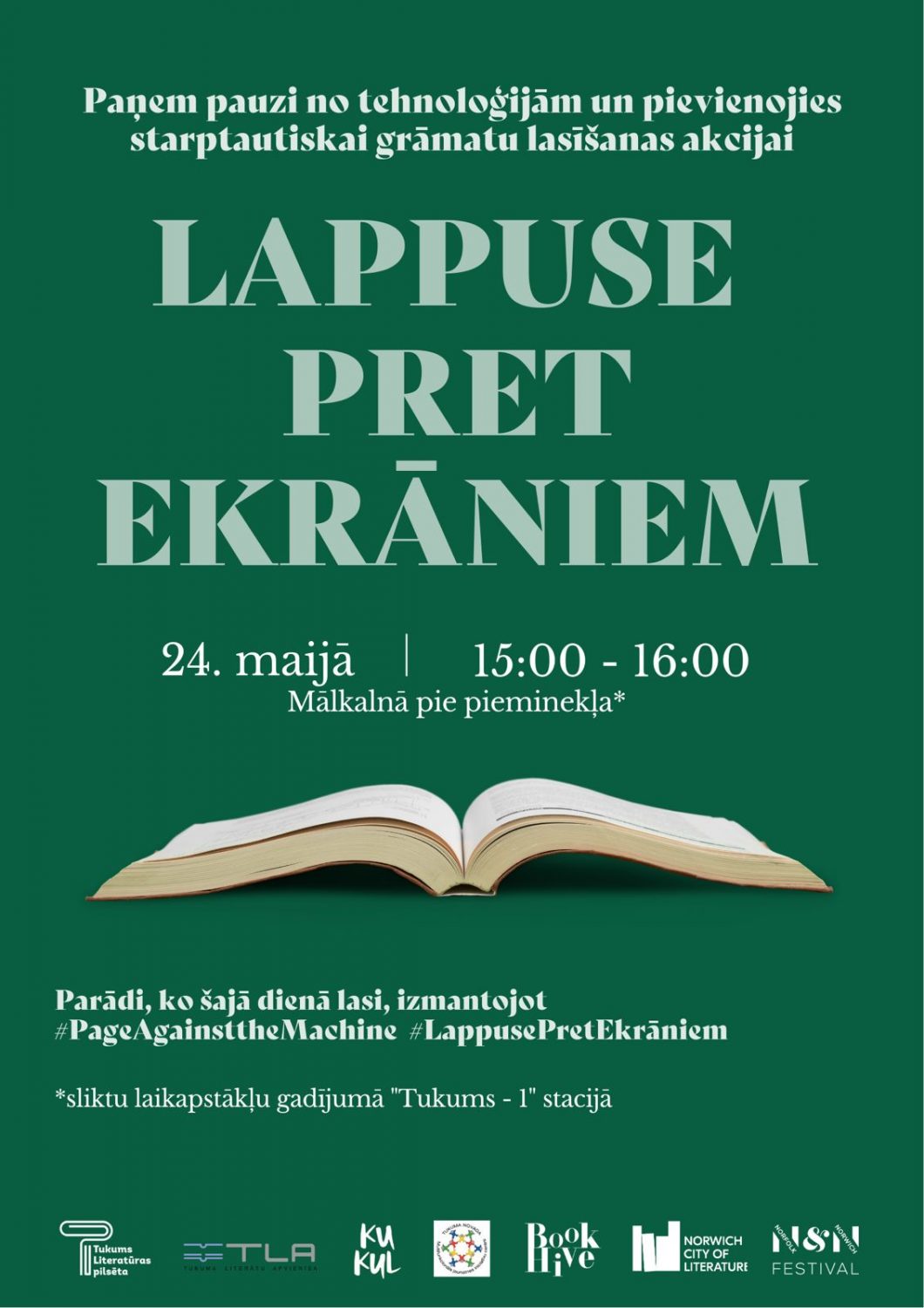 Mirkļi lasīšanai zem klajas debess, kur katrs atver savu grāmatu un domas lido. Šī ir stunda lasītājiem – prom no trokšņa un digitālās steigas. Grāmatu apmaiņa un īpašs gardums kļūst par papildus baudījumu šim klusajam piedzīvojumam. Norises vieta: Mālkalns, Tukums. Norises laiks: 24.05.2025 plkst. 15:00. Dalība: bez maksas.