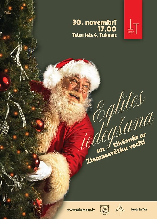 Tukuma centrālās egles iedegšanas brīdis svētdienas pēcpusdienā iesāks svētku noskaņu virpuli, kur gaismiņas sāks dejot un pilsēta iegūs siltu ziemas mirdzumu. Muzikālie priekšnesumi piešķirs pasākumam gaišu un sirsnīgu skanējumu, radot īstu kopības prieku. Tirdziņā būs iespējams sajust svētku garšu un atrast kādu īpašu pārsteigumu dāvanām. Tiekamies Tukumā, Talsu ielā pie eglītes! Norises vieta: Talsu iela 4, Tukums. Norises laiks: 30.11.2025 plkst. 17:00. Vairāk informācijas: 28344637, www.tukumskn.lv
