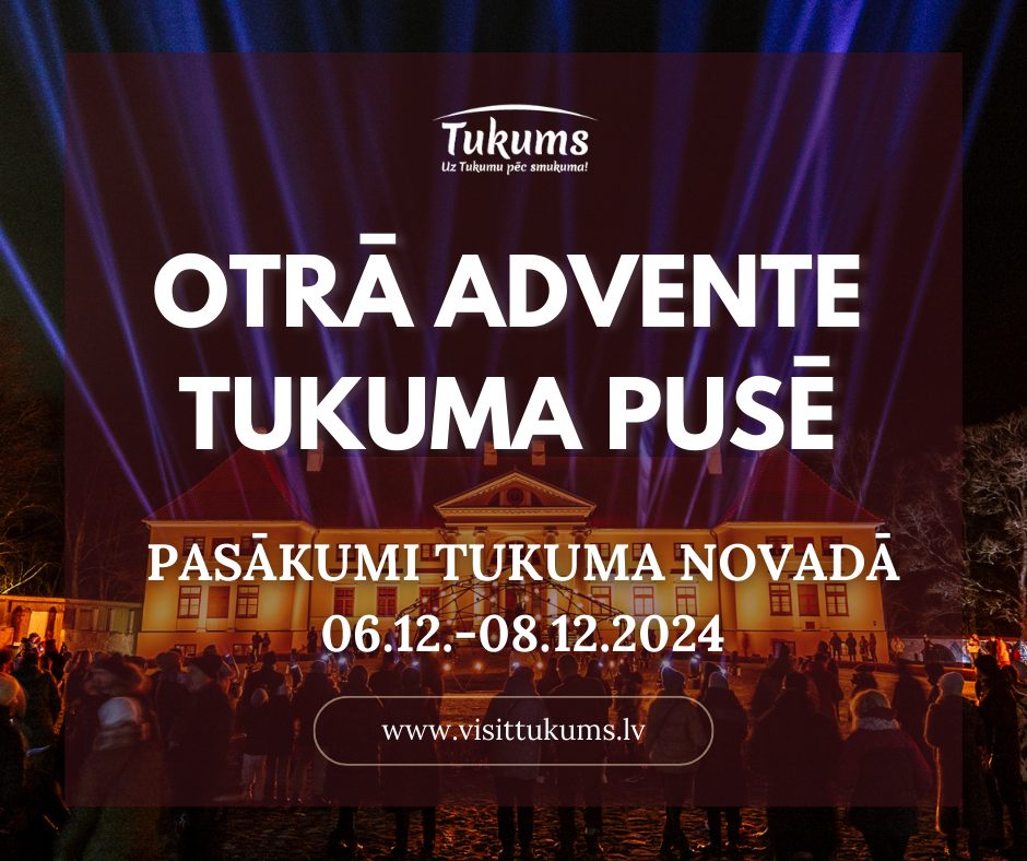 Sajūti Ziemassvētku tuvošanos Tukuma pusē, sagaidot otro Adventes svētdienu! Šajā laikā tradicionāli tiks iedegta otrā svece Adventes vainagā, kas simbolizēs mīlestību un siltumu. Aicinām piedalīties radošajās darbnīcās, svētku koncertos un kopā būšanā gan pilsētās, gan ciemos! Nāciet baudīt svētku noskaņu kopā ar ģimeni un draugiem – pasākumi būs piemēroti gan maziem, gan lielajiem.